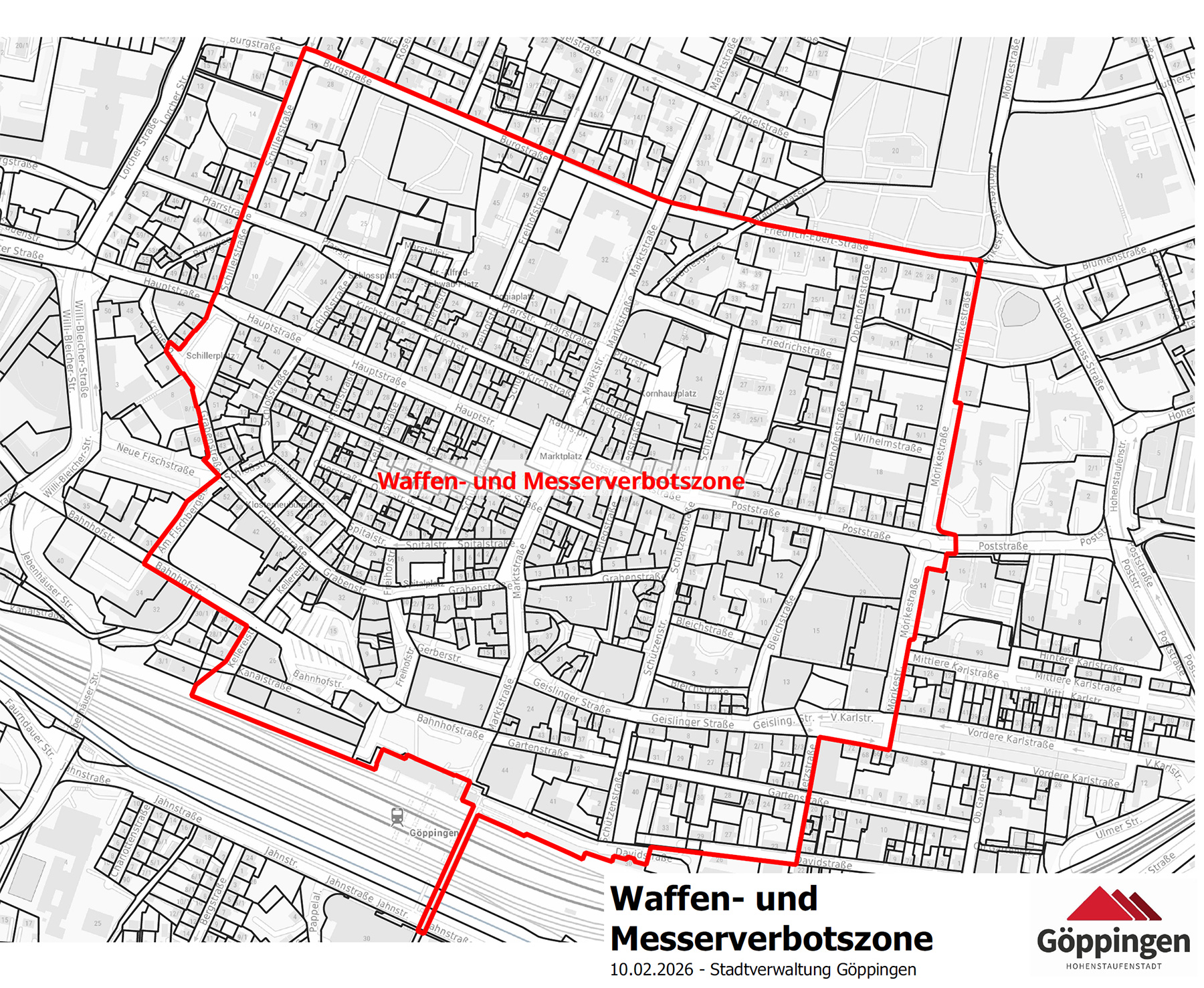 Folgender Bereich der Göppinger Innenstadt ist als Waffen- und Messerverbotszone ausgewiesen: