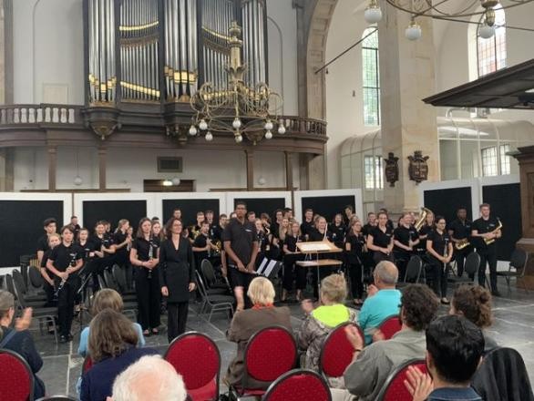 Erfolgreich verlief die Konzertreise der Jugendkapelle Göppingen: Das Ensemble der Jugendmusikschule reiste zu Beginn der Sommerferien mit rund 70 jungen Musiker*innen und ihrer Dirigentin Martina Rimmele in die Niederlande, um in Amsterdam und Zandvoort zu konzertieren. Musikalisches Highlight war ein sehr gut besuchtes Konzert in der Oosterkerk, ein monumentales Kirchengebäude aus dem 17. Jahrhundert inmitten des historischen Stadtzentrums von Amsterdam. Ebenso erfolgreich verlief zuvor - bei schönstem Sommerwetter - ein Open Air-Konzert vor dem historischen Rathaus in Zandvoort.