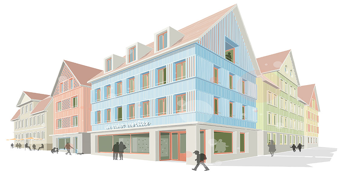 Wie sieht die Zukunft der klassizistischen Quartiere mitten in Göppingen aus? Antworten auf diese Fragenstellung suchte die Wohnbau GmbH Göppingen in enger Zusammenarbeit mit der Stadt Göppingen in einem einstufigen, nicht offenen und anonymen Realisierungswettbewerb zur städtebaulichen und architektonischen Neugestaltung des Kempf-Areals.