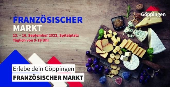 Auf dem Göppinger Spitalplatz findet vom 13. bis 16. September ein Französischer Markt statt. Entdecken und genießen Sie kulinarische Spezialitäten und Leckereien aus dem Südwesten Frankreichs. Erleben Sie französisches „Savoir Vivre“ in schönem Ambiente an rund zehn Ständen, die Sie mit ihren Produkten ins Bordelais entführen. Angeboten werden unter anderem französisches Gebäck, verschiedene Käse- und Wurstsorten, Oliven und Lavendelprodukte. Auch für das leibliche Wohl vor Ort ist gesorgt: Kosten Sie frisch gebackene Flammkuchen und dazu Weine aus Frankreich.