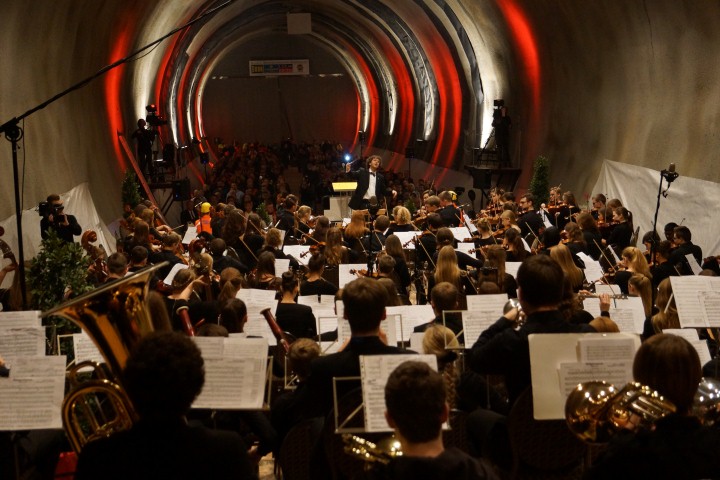 Erfolgreich gelungen ist das Festkonzert des Göppinger Jugendsinfonieorchesters anlässlich der Barbarafeier am 04. Dezember im Steinbühltunnel beim Portal Hohenstadt. Auf Einladung der Geschäftsführung des Bahnprojekts Stuttgart - Ulm musizerte das Ensemble mit seinen über 100 jungen Musikern unter der Leitung von MD Martin Gunkel vor rund 500 geladenen Gästen die 9. Sinfonie "Aus der Neuen Welt" von Antonin Dvorak. Die Tunnelröhre der neuen ICE-Strecke wurde zum Konzertsaal. Das Konzert wurde live im Internet übertragen.
