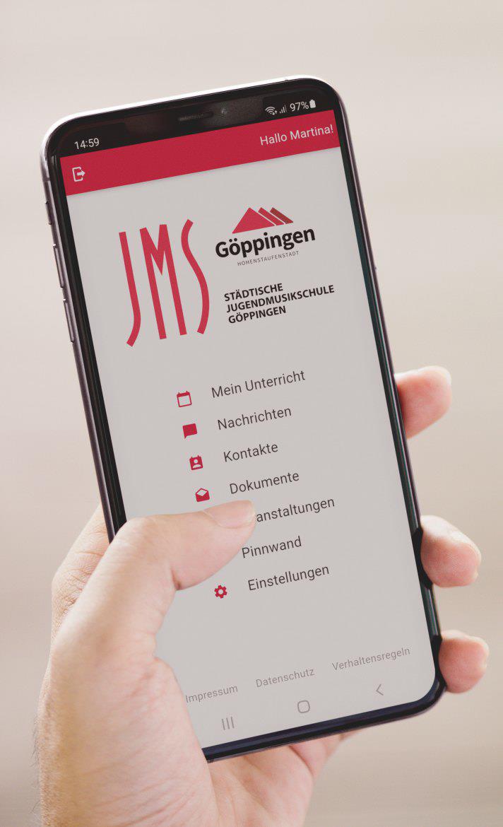 Ab sofort steht die neue Musikschul-App der Städtischen Jugendmusikschule Göppingen im Google-PlayStore sowie im Apple-AppStore zum kostenlosen Download bereit. Außerdem kann die App auf jedem PC im Web-Browser gestartet werden. Die JMS-Göppingen-App ist in erster Linie für die an der Jugendmusikschule angemeldeten Schülerinnen und Schüler und deren Eltern, aber auch für die an der Bildungseinrichtung interessierte Öffentlichkeit gedacht. Nachdem die technischen Vorbereitungen abgeschlossen sind , wird der Zugang in den kommenden Wochen schrittweise für die Eltern bzw. für die Schülerinnen und Schüler geöffnet. Hier gibt es weitere Informationen. PM (PDF, 131 KB) Info-Flyer (PDF, 545 KB)